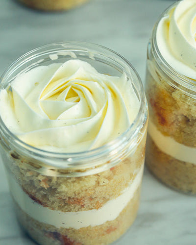 A classic favourite. Soft vanilla sponge with silky whipped vanilla Swiss meringue buttercream. Simple, timeless, and delicious.